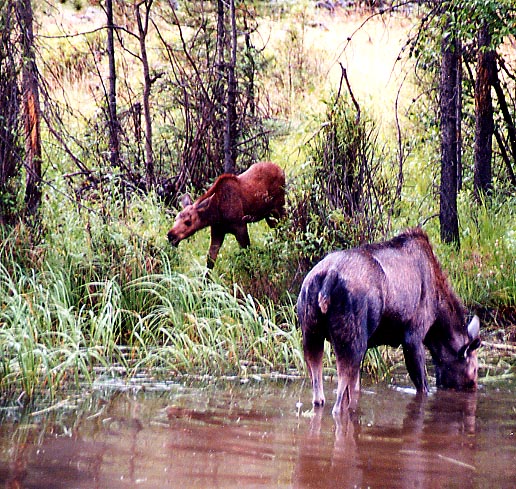 MOOSE WITH CALF AT PAHASKA RECREATION AREA NEAR THE EAST ENTRANCE OF YELLOWSTONE