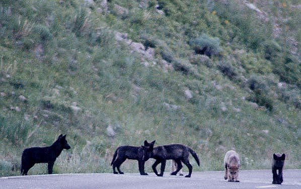 SIX PUPS FROM THE DRUID PEAK PACK PERHAPS WONDERING "WHERE DO WE GO FROM HERE?" AS THEY VENTURE OUT INTO THEIR NEW SURROUNDINGS.